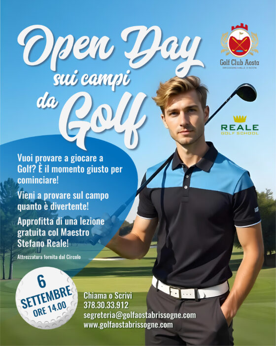 Sabato 6 Settembre, alle ore 14.00, il Golf Club organizzerà un Open Day gratuito aperto a tutti: l’occasione perfetta per scoprire il campo, conoscere i maestri, provare l’attrezzatura e muovere i primi passi nel gioco in un ambiente amichevole e accogliente.