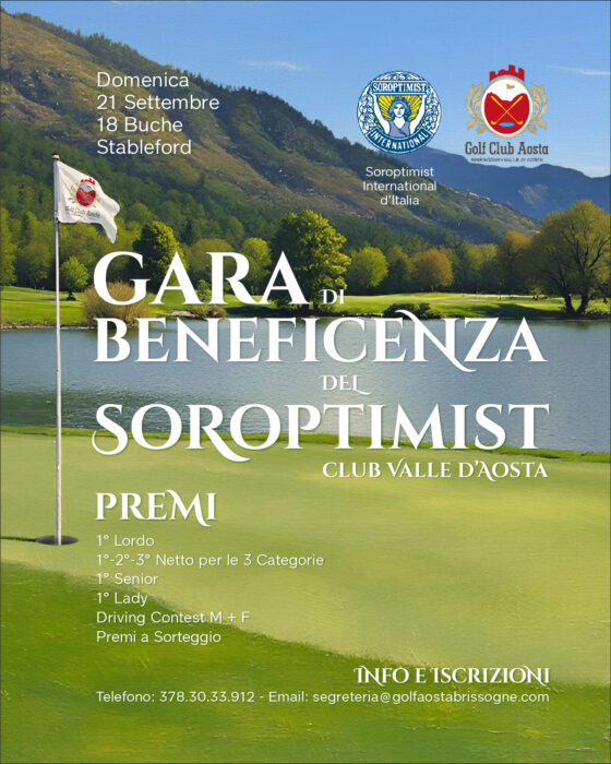 Domenica 21 Settembre ospiteremo un’importantissima Gara di Beneficenza organizzata dalla Soroptimist International d’Italia – Club della Valle d’Aosta.